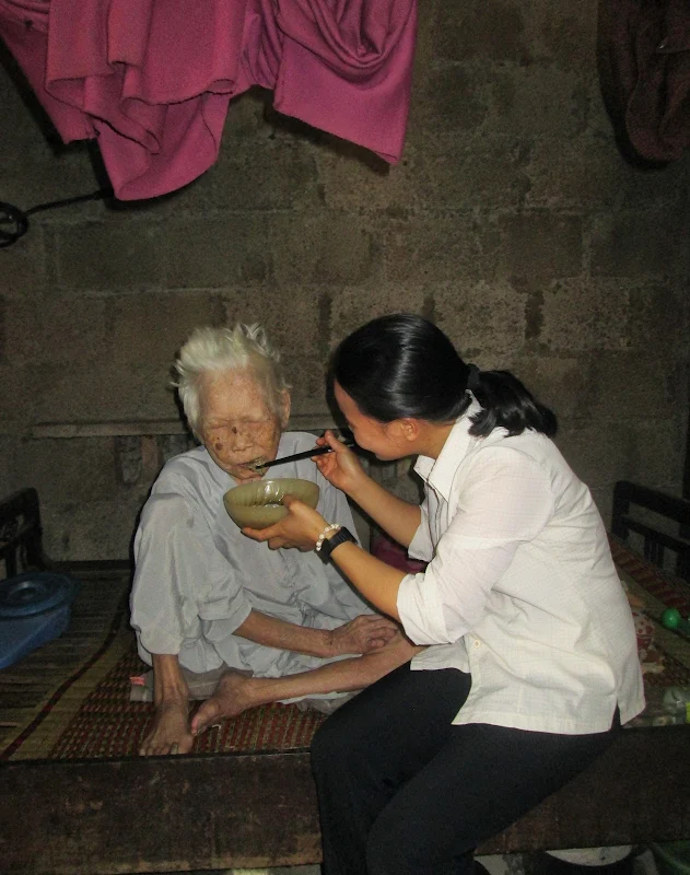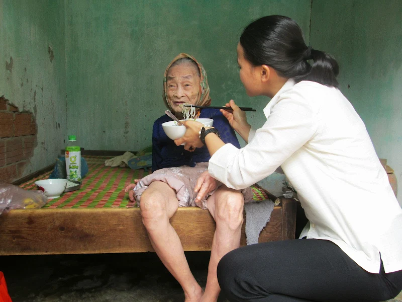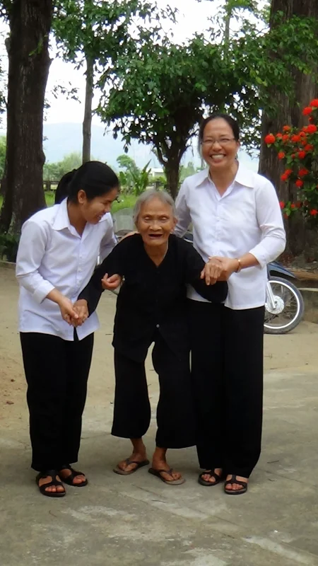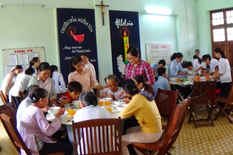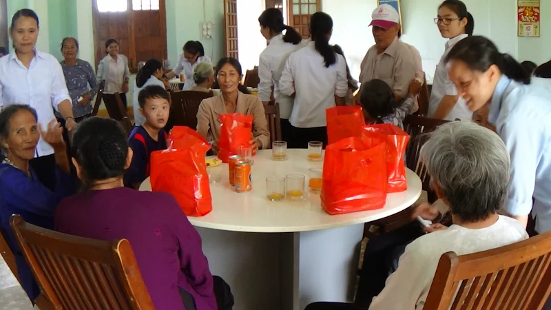 Sau đó chị em có dịp chăm sóc các cụ ông, cụ bà, cắt tóc, cắt móng tay, móng chân, rửa tay, rửa chân, thăm hỏi, tạo niềm vui cho các ông bà. Tiếp đến là bữa trưa đạm bạc tạo thêm sự thân thiện và gần gũi giữa chị em với các cụ ông, cụ bà và các em bệnh tật. Sau bữa trưa, mỗi người còn nhận một phần quà trị giá 200.000ĐVN do ân nhân trao tặng qua tay chị em. Ai nấy đều ngập tràn niềm vui và hạnh phúc, vui không phải vì được ăn ngon, được quà, nhưng vui và hạnh phúc vì mình được quan tâm chăm sóc, được yêu thương, được tôn trọng, góp phần cho cuộc đời của họ có ý nghĩa hơn.